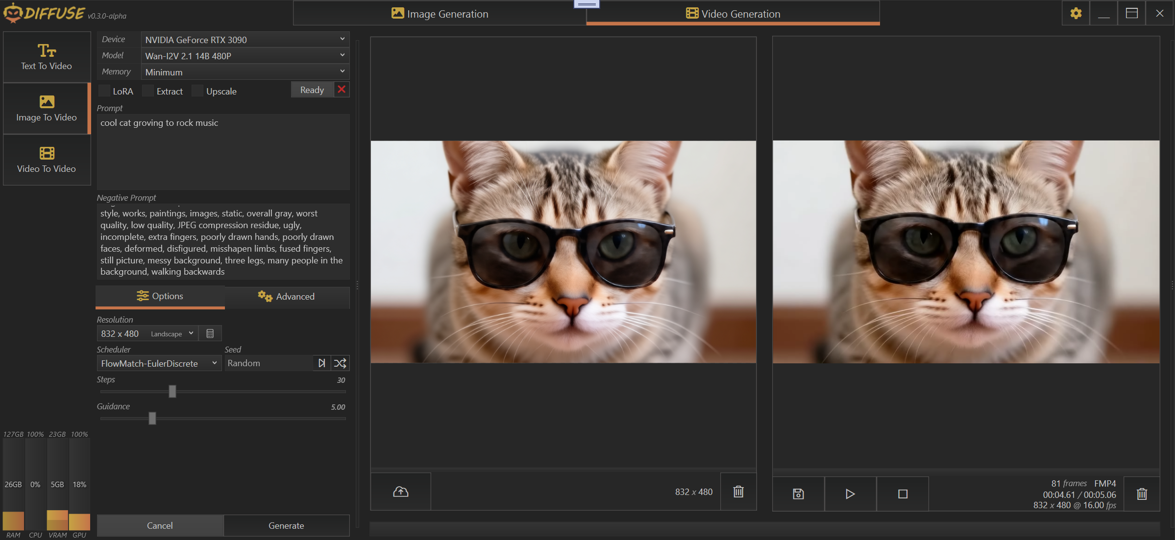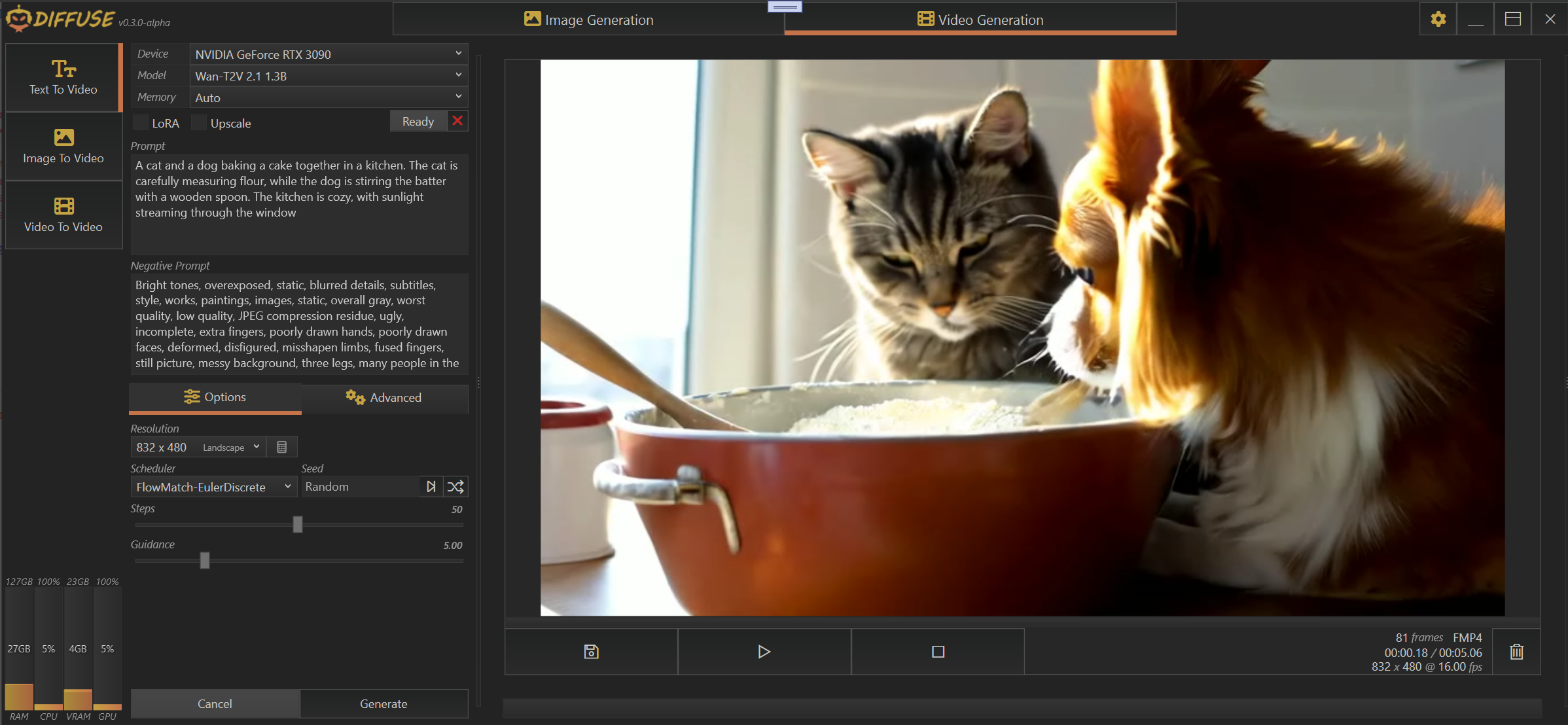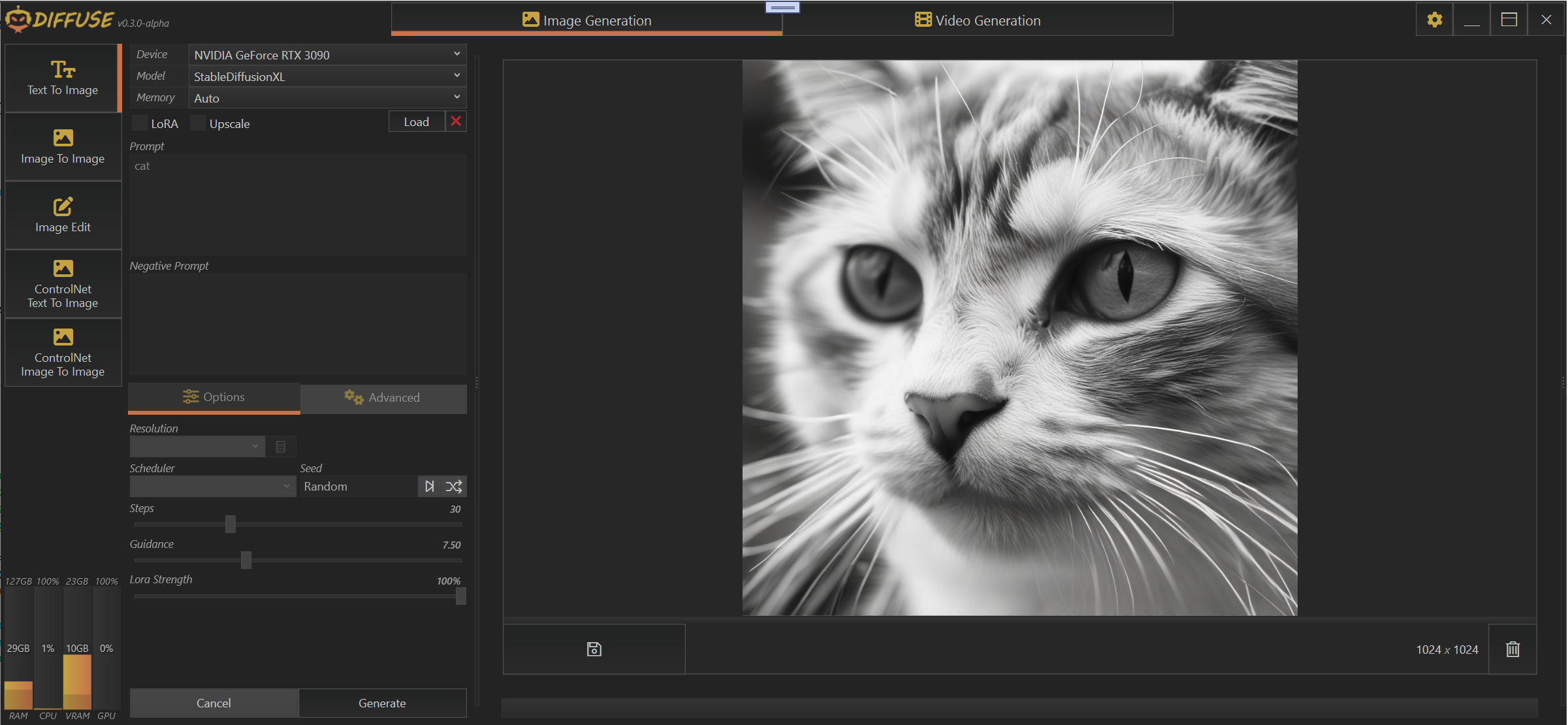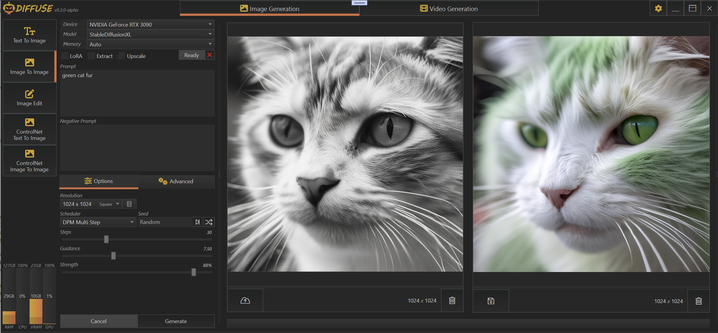 A fast SSD with plenty of free space is recommended, as model downloads can be large.Run Diffuse.exe