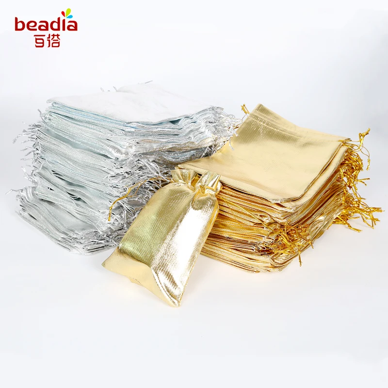 These metallic foil organza pouches, available in silver and gold colors, are perfect for Christmas, weddings, and parties. They come in various sizes, including 7x9cm, 9x12cm, 10x15cm, and 13x18cm, and can be used as favor gifts or candy b