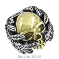 The skull ring is made from sterling silver and gold.