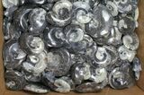 The large kitchen island is surrounded by many storage bins.