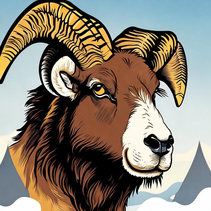 illustration by vector-art of a ram with mountains background, breathtaking, 8 k resolution, extremely detailed, beautiful, establishing shot, artistic, hyperrealistic, octane render, cinematic lighting, dramatic lighting, masterpiece by vector-art