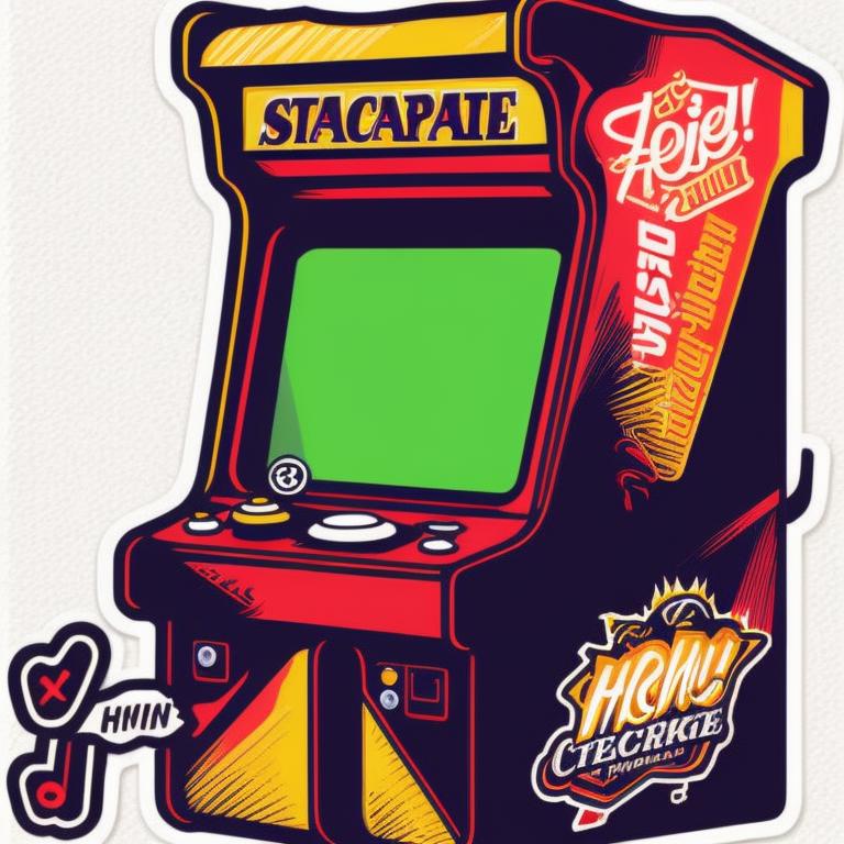 ((die_cut sticker)) arcade machine from hell illustration, intricate decorated insanely detailed arcade, die_cut sticker in style of vector-art