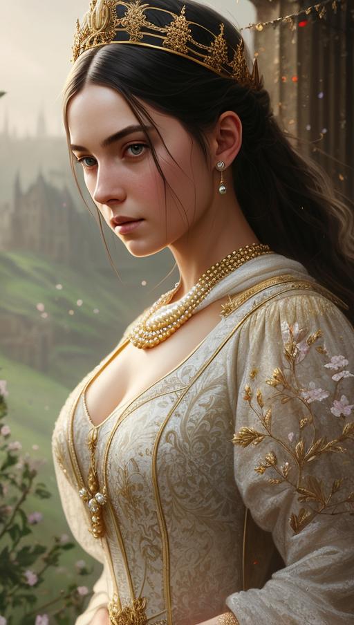 modelshoot style, (extremely detailed CG unity 8k wallpaper), full shot body photo of the most beautiful artwork in the world, english medieval witch, green vale, pearl skin,golden crown, diamonds, medieval architecture, professional majestic oil painting by Ed Blinkey, Atey Ghailan, Studio Ghibli, by Jeremy Mann, Greg Manchess, Antonio Moro, trending on ArtStation, trending on CGSociety, Intricate, High Detail, Sharp focus, dramatic, photorealistic painting art by midjourney and greg rutkowski